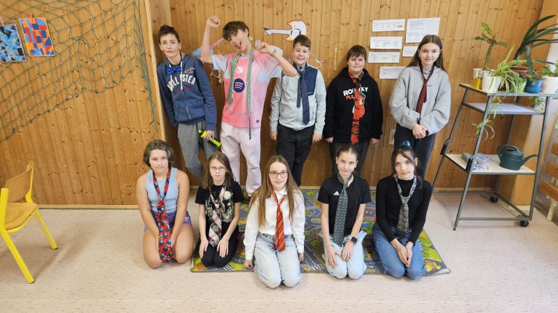 Od prosince má šestá třída jeden den v měsíci trochu jiný. Začali jsme účesy, leden byl kravatový a únor dekovým. Další měsíce děti už mají vymyšlené, čím překvapí.