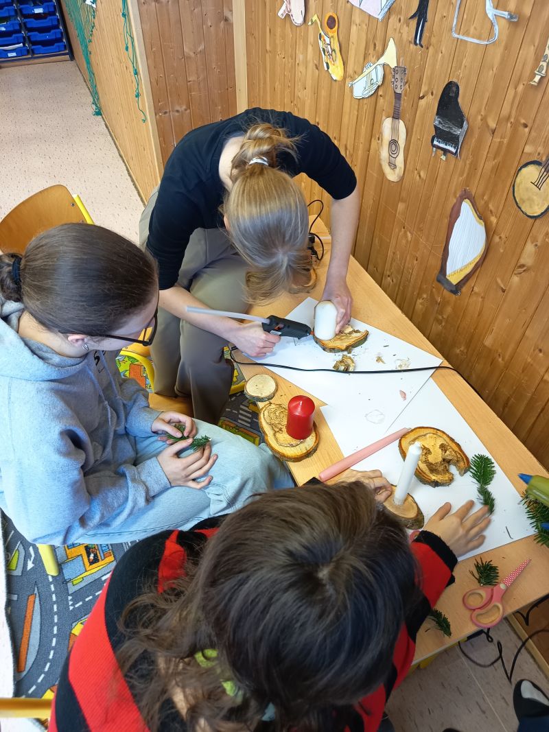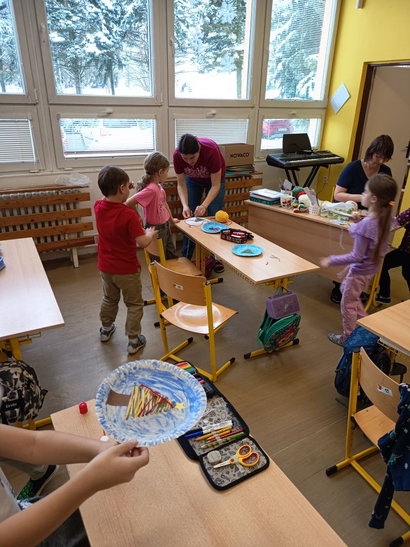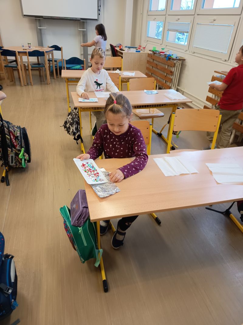 Vánoční čas se pomalu vrací i do naší školy. Děti dnes tvořily v pracovních skupinách nejrůznější vánoční dekorace, spolupracovaly se svými kamarády a učiteli a havně prožívaly, i když to mnohdy nedávaly najevo, těšení a radost. Kdy už budou? Dočkáme se. Už tuto neděli na jarmarku se můžete přesvědčit, jak se jim to povedlo.